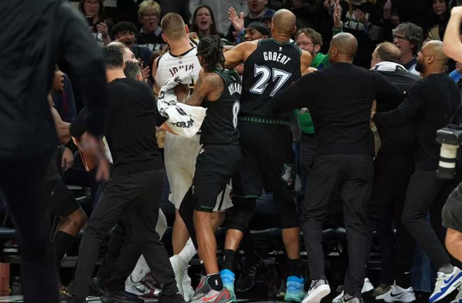 NBA官宣掘狼冲突罚单:约基奇罚5万兰德尔罚3.5万 无人被禁赛